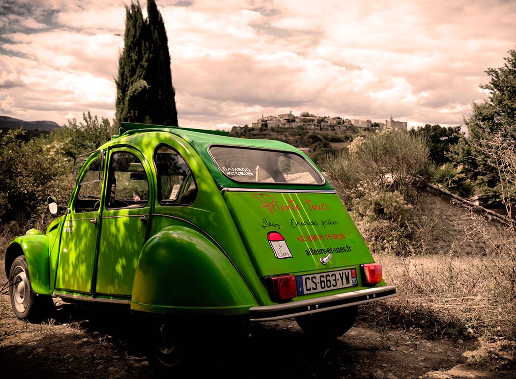 Je vous propose des excursions inoubliables à bord de la plus emblématique des voitures françaises ma 2CV nommée » Bamboo » et mon Estafette prénommée » Schtroumpfette « . En couple ou entre amis, nous partons sillonner les petites routes de campagne autour d’Uzès, mais aussi ailleurs : des vallées cévenoles aux marais de la Camargue, des plateaux ardéchois au delta du Rhône.